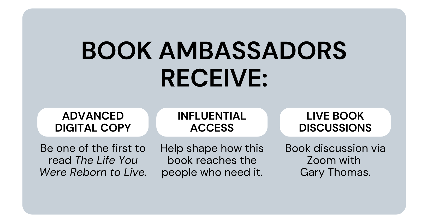 Sign up to be a Book Ambassador for The Life You Were Reborn to Live!